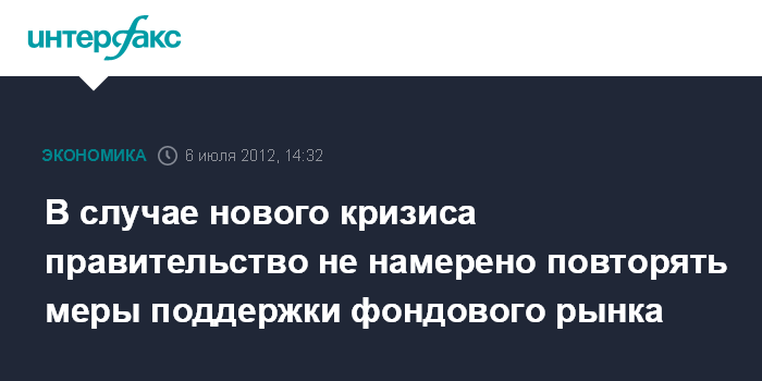 В случае нового кризиса правительство не намерено повторять меры поддержки фондового рынка