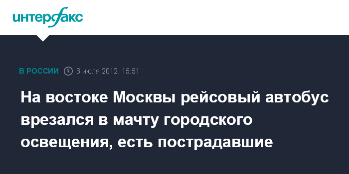 Москва. 6 июля. INTERFAX.RU - На востоке Москвы в районе дома 44 по Щелковскому шоссе рейсовый автобус маршрута 152 совершил наезд на матчу городского освещения.