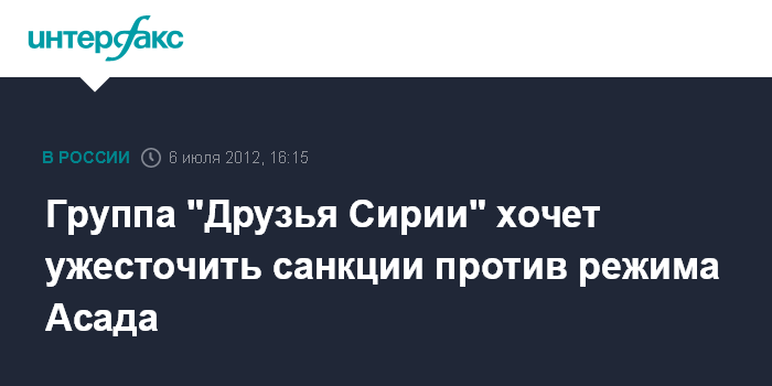 Париж. 6 июля. INTERFAX.RU - Участники встречи "друзей Сирии" по итогам пятничного заседания в Париже пришли к договоренности ужесточить санкции против режима сирийского президента Башара Асада.