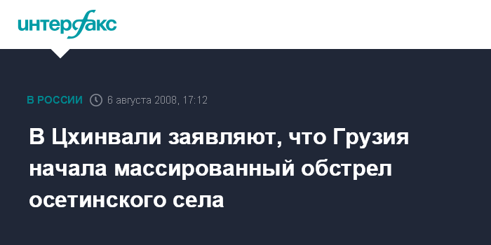 Москва. 6 августа. INTERFAX.RU - Грузинская сторона открыла массированный огонь из крупнокалиберного оружия по селу Хетагурово Цхинвальского района Южной Осетии.