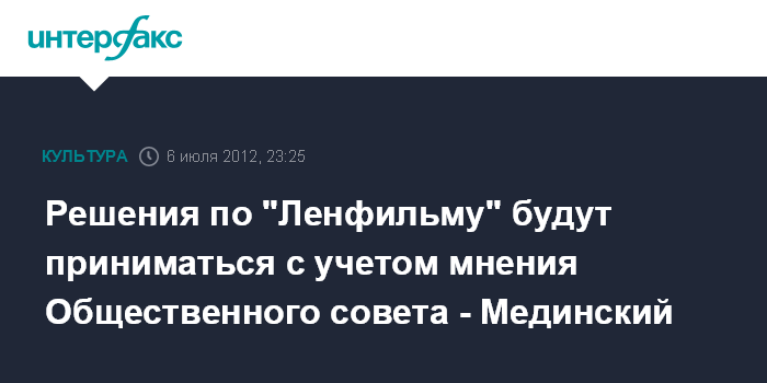 Решения по "Ленфильму" будут приниматься с учетом мнения Общественного совета - Мединский