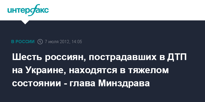 Шесть россиян, пострадавших в ДТП на Украине, находятся в тяжелом состоянии - глава Минздрава