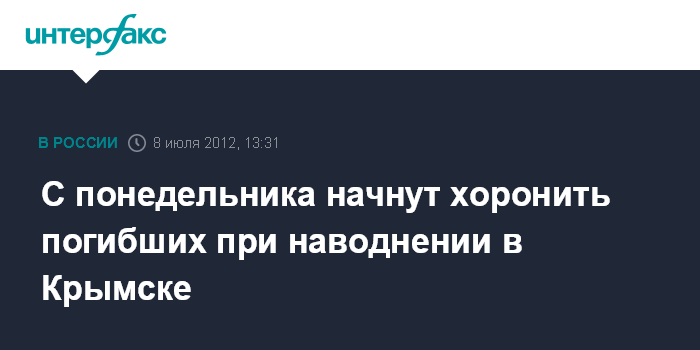 С понедельника начнут хоронить погибших при наводнении в Крымске
