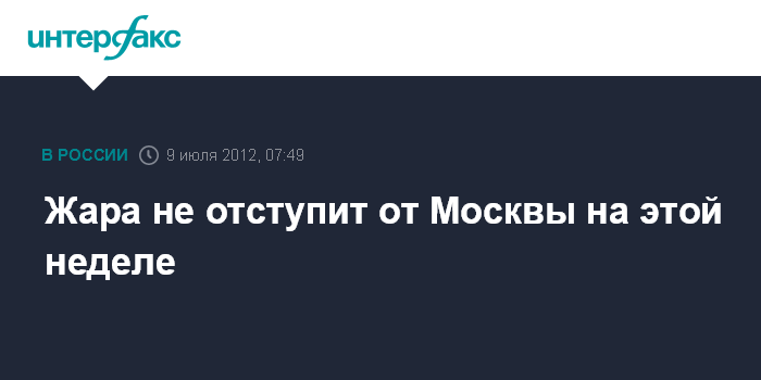Москва. 9 июля. ИНТЕРФАКС-МОСКВА - В течение недели в столичном регионе сохранится жаркая погода, сообщили "Интерфаксу" в Гидромететобюро Москвы и Московской области.