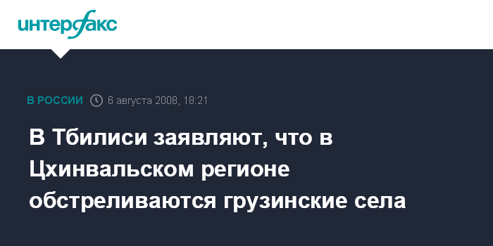 Москва. 6 августа. INTERFAX.RU - В Тбилиси заявили, что вечером в среду югоосетинские подразделения предприняли массированный обстрел грузинских сел Нули и Авневи и Двани, а также расположенного вблизи них поста грузинских миротворцев.