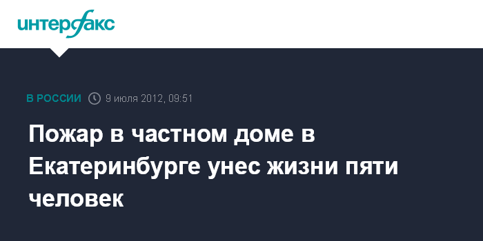 Екатеринбург. 9 июля. INTERFAX.RU - Жертвами пожара, произошедшего в ночь на понедельник в частном доме в Екатеринбурге, стали пять человек, сообщает пресс-служба СУ СКР по Свердловской области.