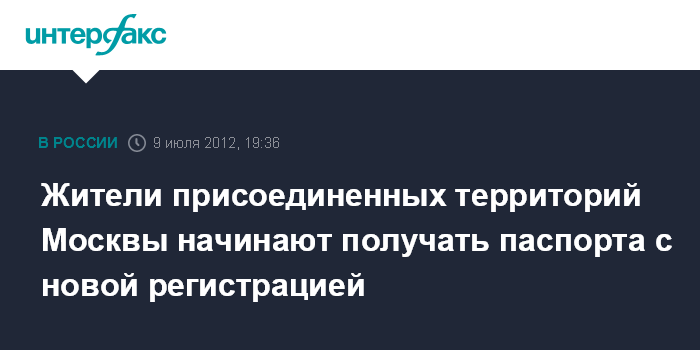 Москва. 9 июля. INTERFAX.RU - Федеральная миграционная служба (ФМС) во вторник начнет выдавать первые паспорта с регистрацией на новых территориях Москвы.