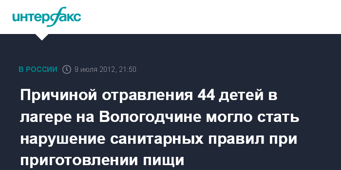 Причиной отравления 44 детей в лагере на Вологодчине могло стать нарушение санитарных правил при приготовлении пищи