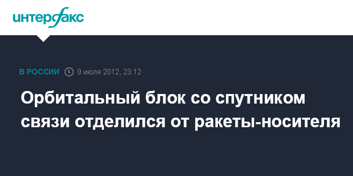Как сообщил "Интерфаксу" официальный представитель космического центра имени Хруничева Александр Бобренев, "в 22:48 МСК орбитальный блок успешно отделился от ракеты-носителя и продолжает полет по суборбитальной траектории".