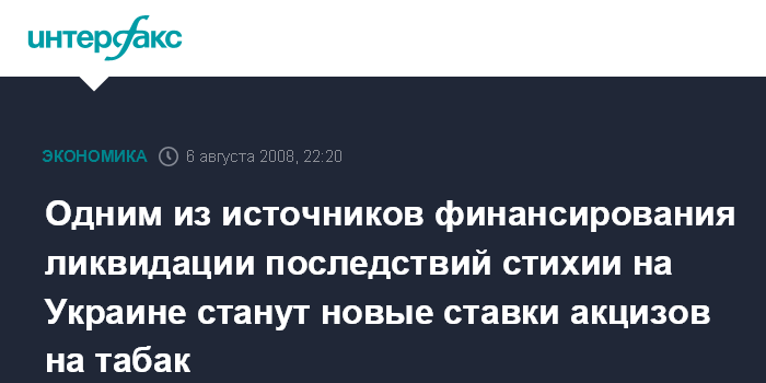 Одним из источников финансирования ликвидации последствий стихии на Украине станут новые ставки акцизов на табак