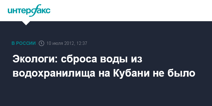 Москва. 10 июля. INTERFAX.RU - Независимые экологи пришли к выводу о том, что намеренного сброса воды из Неберджаевского водохранилища в Краснодарском крае не было.