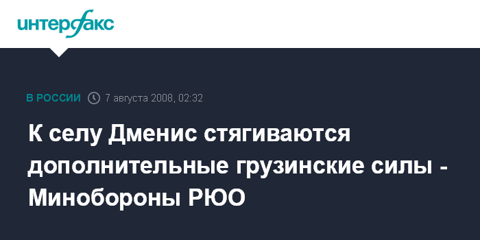 "Жители села Дменис укрылись в подвалах, поэтому невозможно даже приблизительно определить потери. Сотрудникам силовых структур РЮО приказано адекватно отвечать на грузинский огонь", - добавил собеседник агентства.