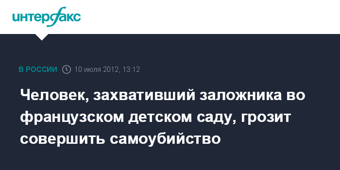 Человек, захвативший заложника во французском детском саду, грозит совершить самоубийство