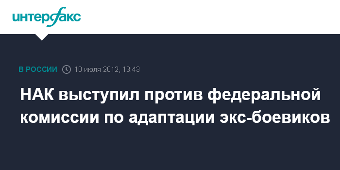 Москва. 10 июля. INTERFAX.RU - В Национальной антитеррористическом комитете (НАК) не видят смысла создавать на федеральном уровне комиссию по адаптации к мирной жизни боевиков на Северном Кавказе.