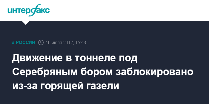 Москва. 10 июля. INTERFAX.RU - В тоннеле под Серебряным бором, по уточненным данным, загорелась "Газель", работающая на газе, сообщил "Интерфаксу" источник в правоохранительных органах