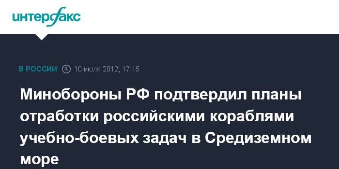 Минобороны РФ подтвердил планы отработки российскими кораблями учебно-боевых задач в Средиземном море