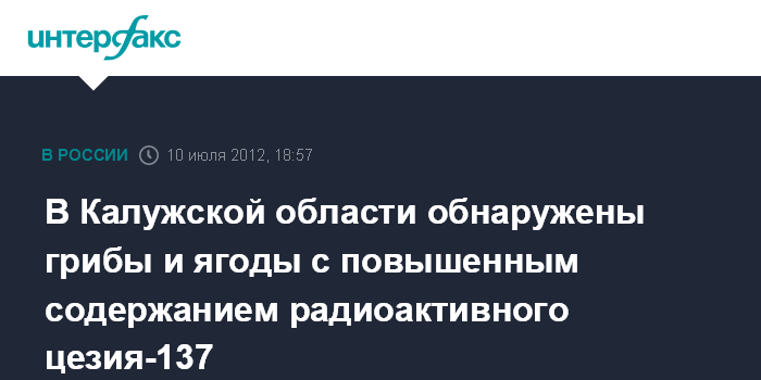 Роспотребнадзор призывает жителей Калужской области обратить внимание на радиационную безопасность продуктов: приобретать только чистые в радиационном отношении грибы и ягоды, требовать у продавцов протоколы радиационного контроля и по возможности отказаться от покупки продуктов неизвестного происхождения, если есть подозрение, что они собирались на территориях, пострадавших в результате аварии на Чернобыльской АЭС - в Брянской области, Беларуси или на Украине.