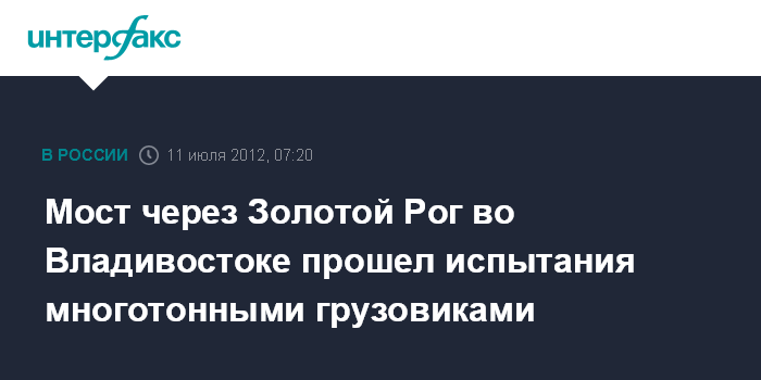Владивосток. 11 июля. INTERFAX.RU - Колонна из 24 загруженных самосвалов проехала по мосту через бухту Золотой Рог во Владивостоке, чтобы испытать прочность конструкции, сообщает в среду пресс-служба генерального подрядчика строительства ЗАО "ТМК".