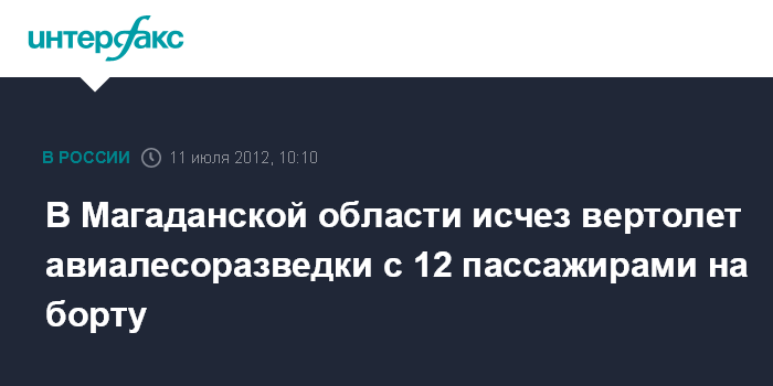 В Магаданской области исчез вертолет авиалесоразведки с 12 пассажирами на борту