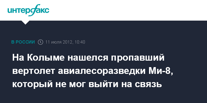 Магадан. 10 июля. INTERFAX.RU - В Магаданской области нашелся вертолет авиалесоразведки Ми-8, о потере связи с которым сообщалось некоторое время назад.