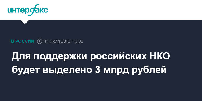 Горки. 11 июля. INTERFAX.RU - Российским некоммерческим организациям будет оказана финансовая поддержка в размере 3 млрд рублей.