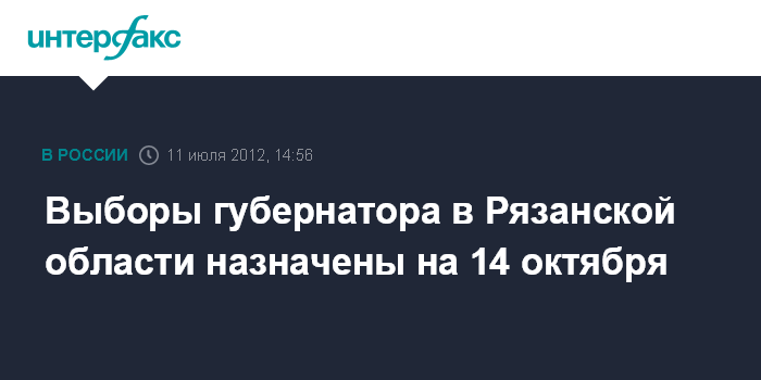 Рязань. 11 июля. INTERFAX.RU - Депутаты Рязанской областной думы в среду, на очередном заседание, приняли постановление о проведение выборов губернатора Рязанской области 14 октября 2012 года, сообщил корреспондент "Интерфакса".