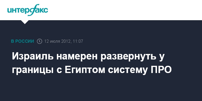 Иерусалим. 12 июля. INTERFAX.RU - Израиль намерен развернуть на границе с Египтом батарею ракет-перехватчиков "Железный купол", сообщает израильская газета "Гаарец".