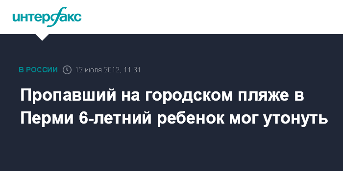 Пермь. 12 июля. INTERFAX.RU - Шестилетний мальчик, о похищении которого заявил в полицию Перми его дядя, мог утонуть на городском пляже краевой столицы, сообщил агентству "Интерфакс" источник в правоохранительных органах.