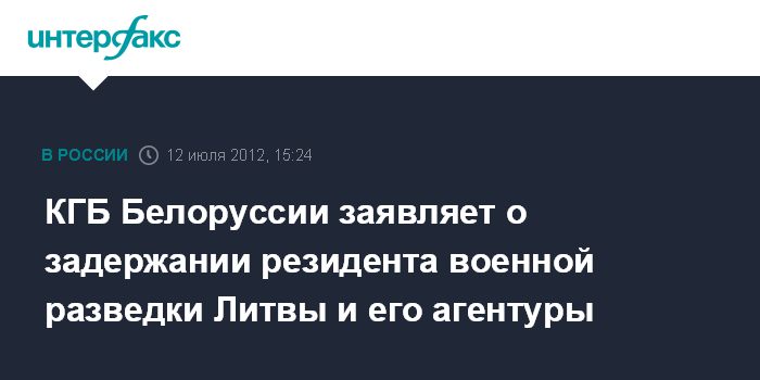 Минск. 12 июля. INTERFAX.RU - Комитетом государственной безопасности Белоруссии пресечена шпионская деятельность белорусских граждан, осуществляемая ими в интересах спецслужб Литовской Республики, сообщили агентству "Интерфакс-Запад" в Центре информации и общественных связей КГБ (ЦИОС КГБ).