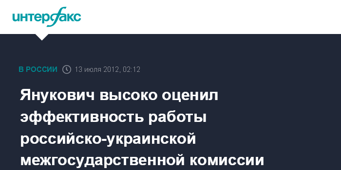 Киев. 13 июля. ИНТЕРФАКС-УКРАИНА - Президент Украины Виктор Янукович высоко оценил эффективность работы российско-украинской межгосударственной комиссии и достигнутые в ее рамках договоренности.