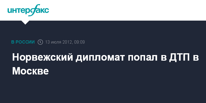 Москва. 13 июля. INTERFAX.RU - Секретарь-архивариус норвежского посольства попал в ДТП в центре Москвы, сообщил "Интерфаксу" источник в правоохранительных органах.