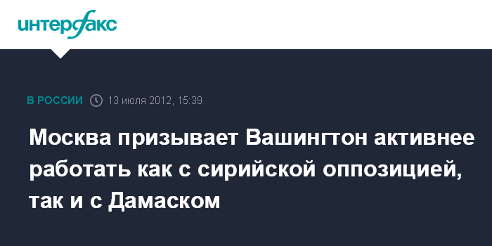 Москва призывает Вашингтон активнее работать как с сирийской оппозицией, так и с Дамаском
