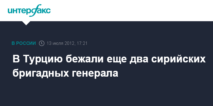 Стамбул. 13 июля. INTERFAX.RU - Еще два бригадных генерала из армии президента Сирии Башара Асада с несколькими солдатами бежали в Турцию, сообщило в пятницу Анатолийское информагентство.