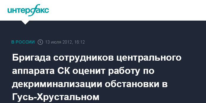 По указанию председателя СК в ближайшее время в Гусь-Хрустальный выедет бригада опытных сотрудников центрального аппарата, которые проанализируют результаты работы следственного управления по Владимирской области по реализации комплекса мероприятий по декриминализации сложившейся в районе обстановки.