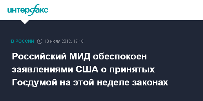 Российский МИД обеспокоен заявлениями США о принятых Госдумой на этой неделе законах