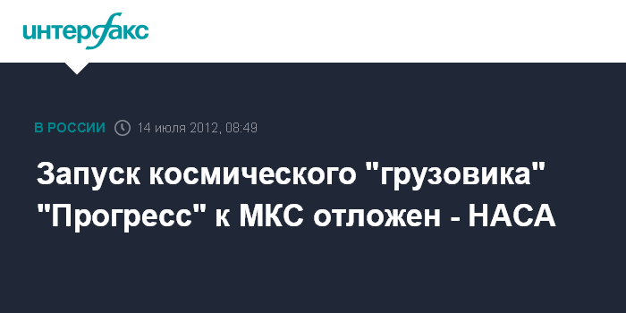 Запуск космического "грузовика" "Прогресс" к МКС отложен - НАСА