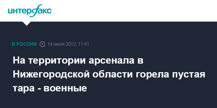 Санкт-Петербург. 14 июля. INTERFAX.RU - Жертв и пострадавших в результате происшествия на военном арсенале Володарского района Нижегородской области нет, сообщили "Интерфаксу" в субботу в пресс-службе Западного военного округа.