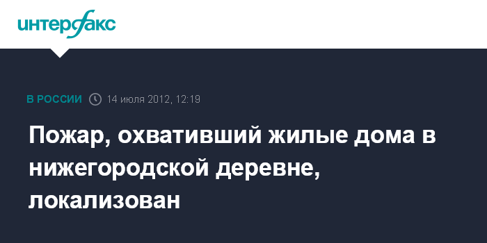 Нижний Новгород. 14 июля. INTERFAX.RU - Пожарные локализовали возгорание жилых домов в деревне Мамонтово Нижегородской области, однако к этому моменту огонь охватил уже восемь строений. "Из-за сильного порывистого ветра огонь перекинулся на соседние строения. Таким образом, горят восемь строений - пять личных жилых домов, один дом под дачу и два нежилых дома", - сообщает пресс-служба ГУ МЧС России по Нижегородской области.