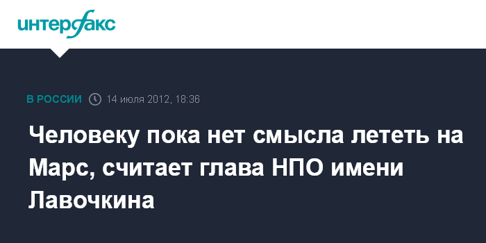 Человеку пока нет смысла лететь на Марс, считает глава НПО имени Лавочкина