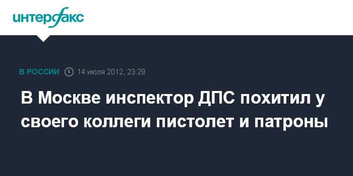 Москва. 14 июля. ИНТЕРФАКС – Инспектор ДПС похитил пистолет у своего коллеги, сообщили «Интерфаксу» в пресс-службе ГУ МВД России по Москве в субботу.
