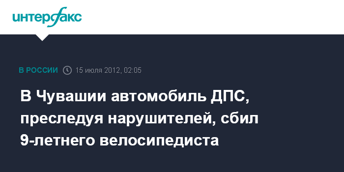 В Чувашии автомобиль ДПС, преследуя нарушителей, сбил 9-летнего велосипедиста