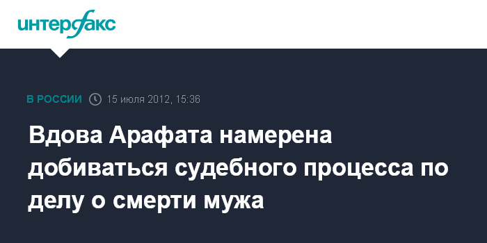 Париж. 15 июля. INTERFAX.RU - Вдова Ясира Арафата намерена до конца июля добиться начала судебного процесса по делу о смерти экс-лидера Палестинской национальной администрации, заявил ее адвокат Марк Боннант в интервью, опубликованном в воскресном выпуске французской газеты "Матан". "Госпожа Арафат решила подать жалобу в суд Франции в течение месяца", - заявил юрист, по словам которого, судебный процесс будет запущен во Франции, так как Я.Арафат скончался во французском госпитале.