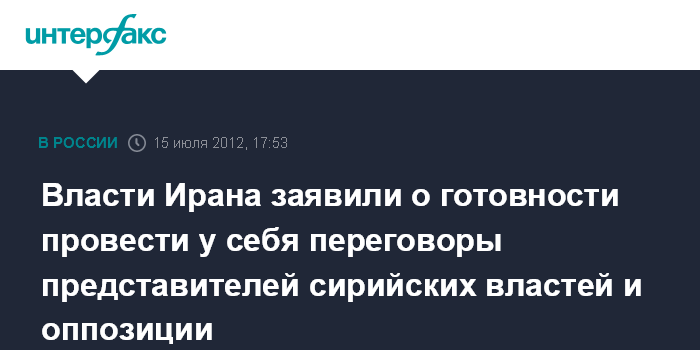Власти Ирана заявили о готовности провести у себя переговоры представителей сирийских властей и оппозиции