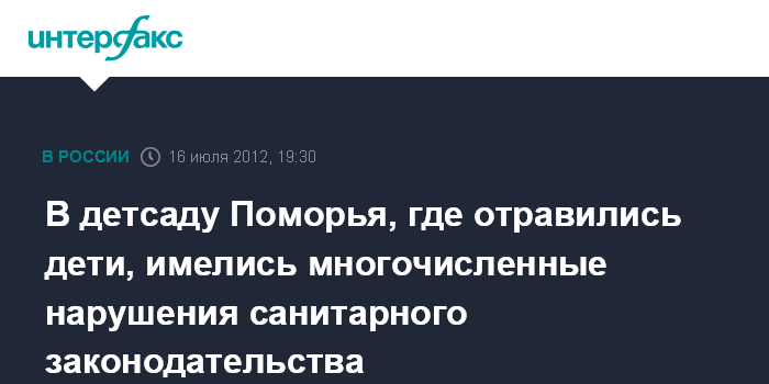 Архангельск. 17 Июля. INTERFAX.RU - Многочисленные нарушения санитарного законодательства выявлены в детском саду №94 "Лесовичок" в Архангельске, где отравились более 20 воспитанников, сообщила пресс-служба регионального Роспотребнадзора в понедельник.