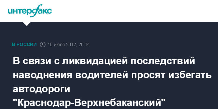 В связи с высокой загруженностью автодороги А-146 "Краснодар- Верхнебаканский" спецтранспортом министерств и ведомств, задействованных в ликвидации последствий наводнения, а также автоколоннами с гуманитарной помощью Минтранс России, МЧС России и МВД России обращаются к автолюбителям с просьбой отнестись с пониманием к ситуации и выбирать альтернативные маршруты движения.