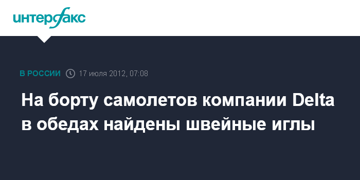 На борту самолетов компании Delta в обедах найдены швейные иглы