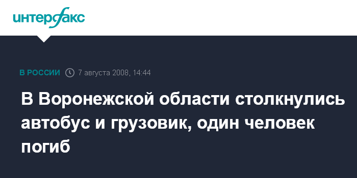 Москва. 7 августа. INTERFAX.RU - В Богучарском районе Воронежской области в четверг утром в результате ДТП один человек погиб, 9 пострадали, сообщили "Интерфаксу" в УГИБДД региона.