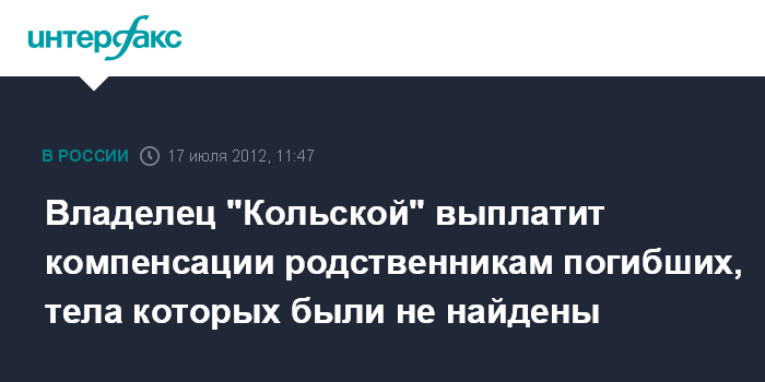 Владелец "Кольской" выплатит компенсации родственникам погибших, тела которых были не найдены