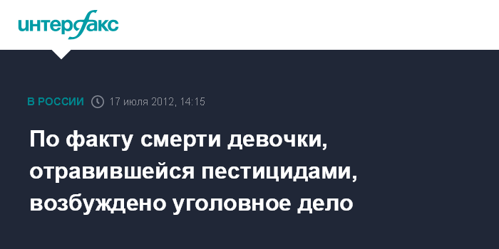 По факту смерти девочки, отравившейся пестицидами, возбуждено уголовное дело
