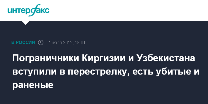 Бишкек. 17 июля. INTERFAX.RU - Между пограничниками Киргизии и Узбекистана на недемаркированном участке госграницы произошла перестрелка, есть жертвы.